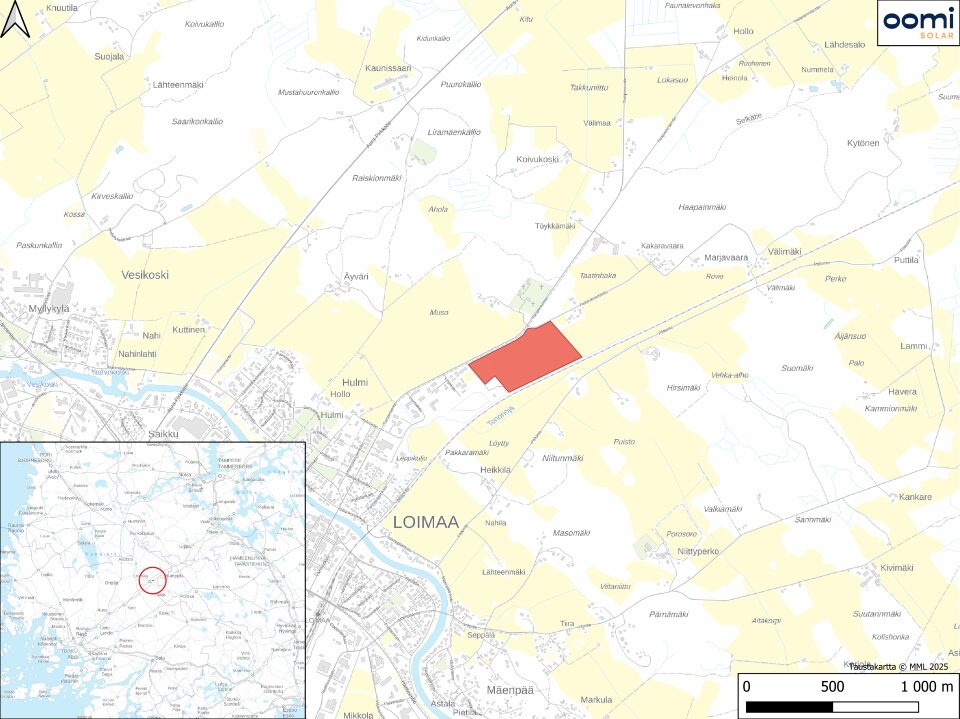 Loimaan hybridihanke sijoittuu noin kaksi kilometriä Loimaan taajamasta koilliseen. Hankealue koostuu peltoalueesta, jossa on valmiina hyvä infrastruktuuri ja naapurikiinteistössä sähköasema. Maasto on pääasiassa tasaista eikä alueella ole merkittäviä maan muokkaamisen tarpeita.